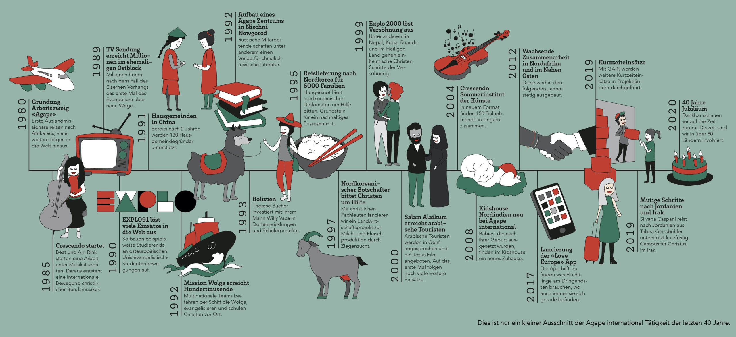 Das Bild haben wir anlässlich unseres 40-Jahr-Jubiläum erstellt. Es gibt dir einen Einblick in prägende Erlebnisse der letzten Jahre.